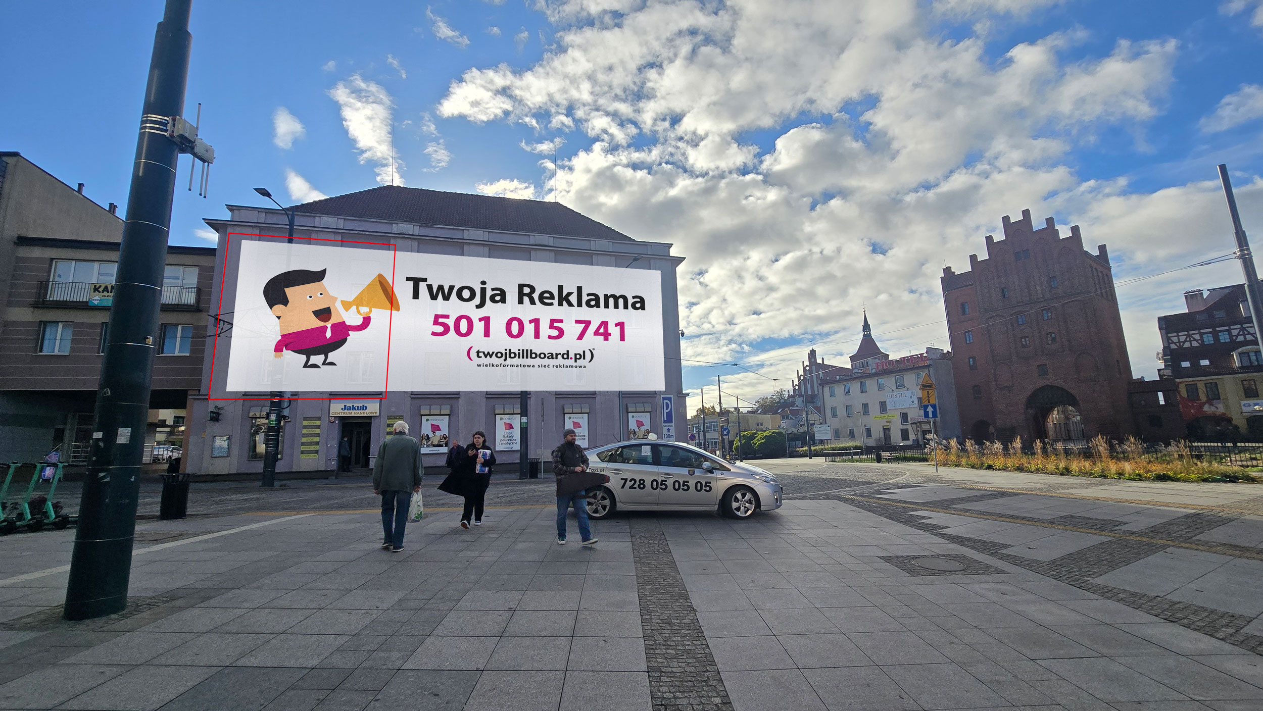 powierzchnia wielkoformatowa znajduje się w Centrum Olsztyna, Plac Jedności Słowiańskiej 1